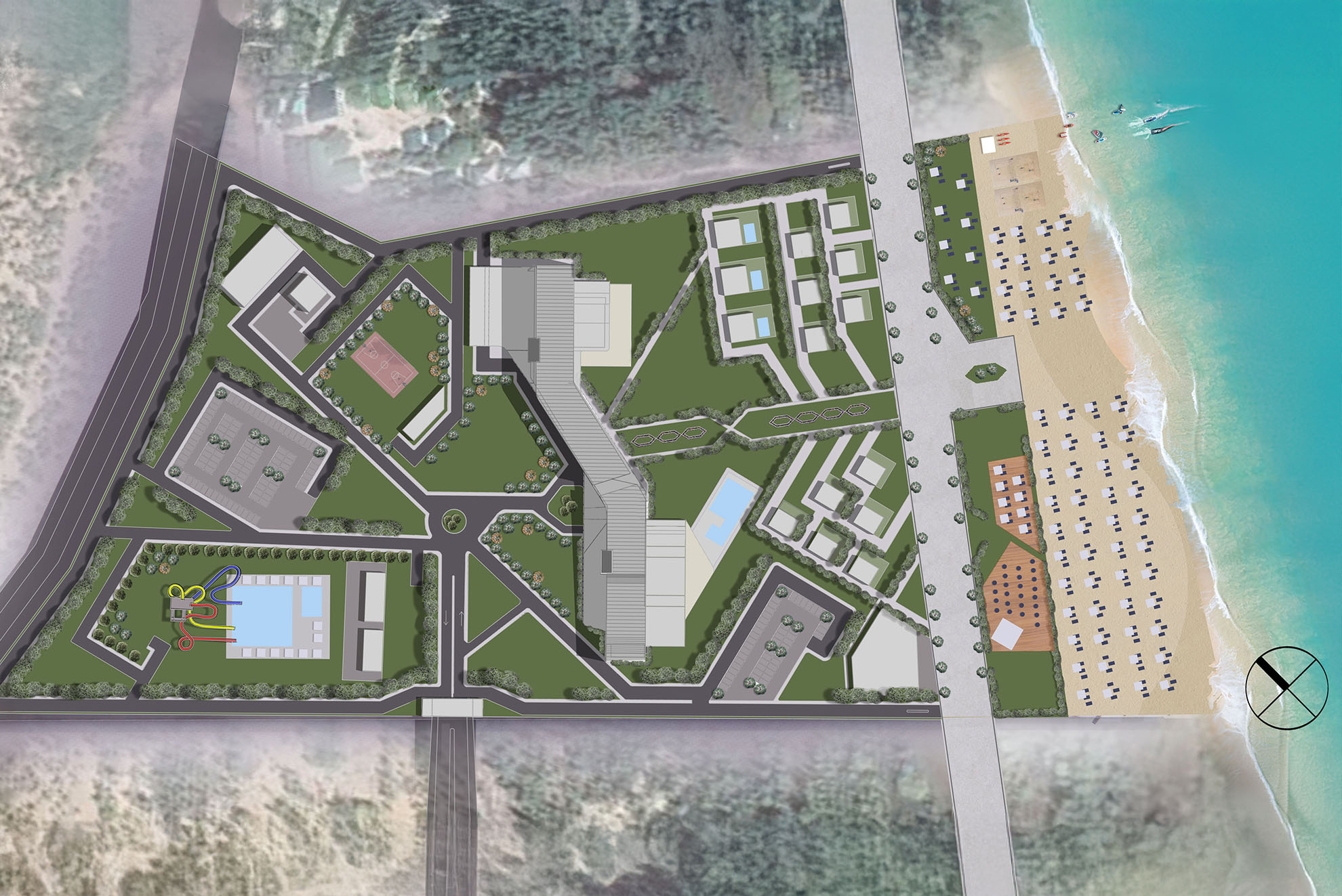 This tourism development is located on the shores of Issyk-Kul, one of Central Asia’s largest saltwater lakes in Kyrgyzstan, set within a continental climate and mountainous landscape. The masterplan includes a 100-room hotel with full amenities and five independent beachfront villas.